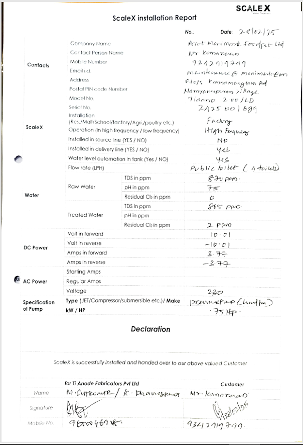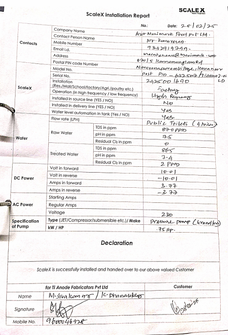 Installation Engineer Name: Mr. K. DHANASEKAR